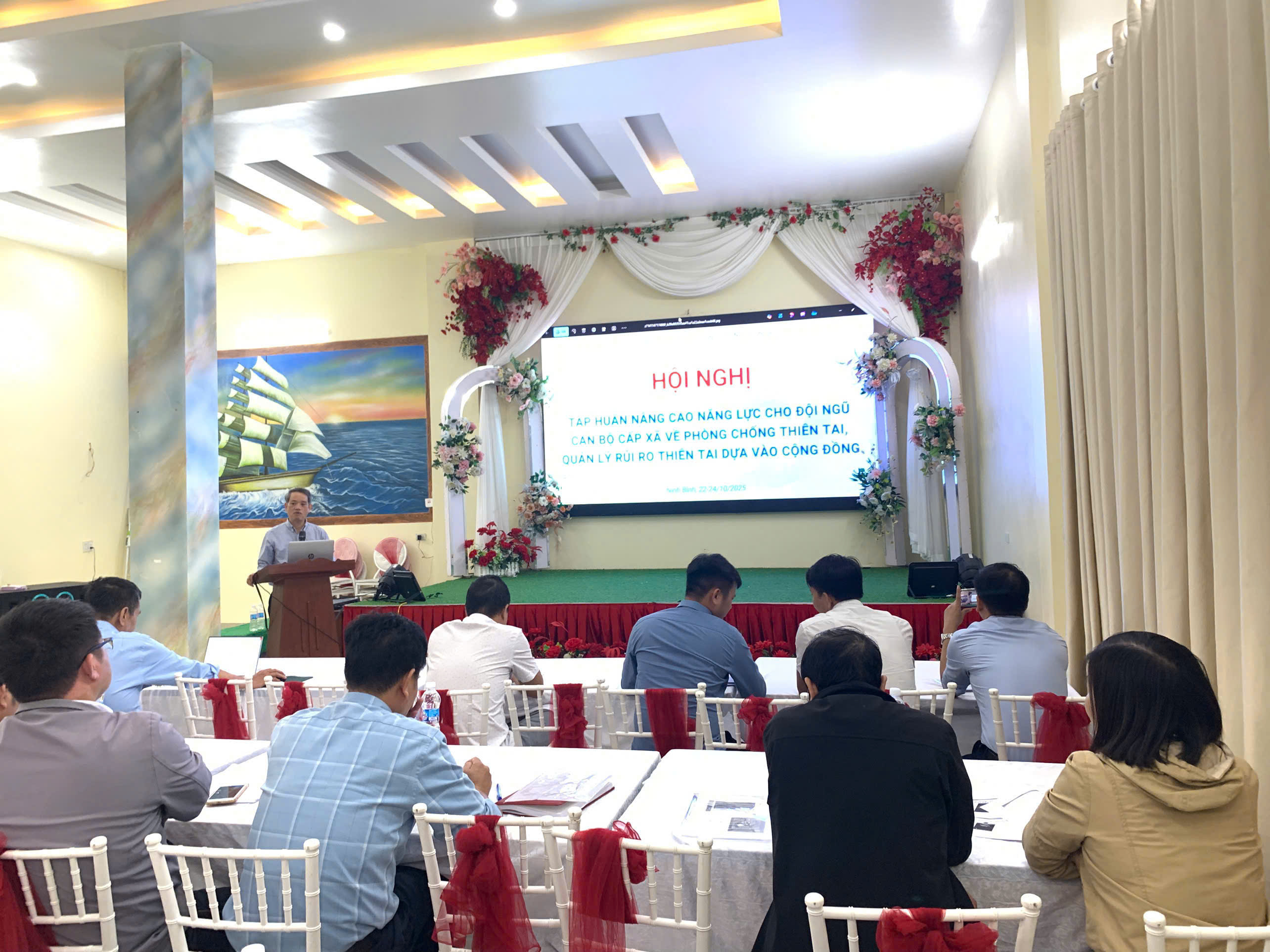 Tại khóa tập huấn, 46 học viên đến từ 23 xã trên địa bàn tỉnh Ninh Bình đã được giảng viên chia sẻ, cập nhật các kiến thức liên quan đến các quy định pháp luật và chính sách mới về PCTT tại Việt Nam trong bối cảnh chính quyền 02 cấp; Hướng dẫn xây dựng kế hoạch phòng chống thiên tai cấp xã và phương án ứng phó thiên tai theo các cấp độ rủi ro thiên tai; Truyền thông trong phòng chống thiên tai; Ứng dụng công nghê thông tin, chuyển đổi số ứng phó thiên tai dựa vào cộng đồng trong vận hành chính quyền địa phương 02 cấp.