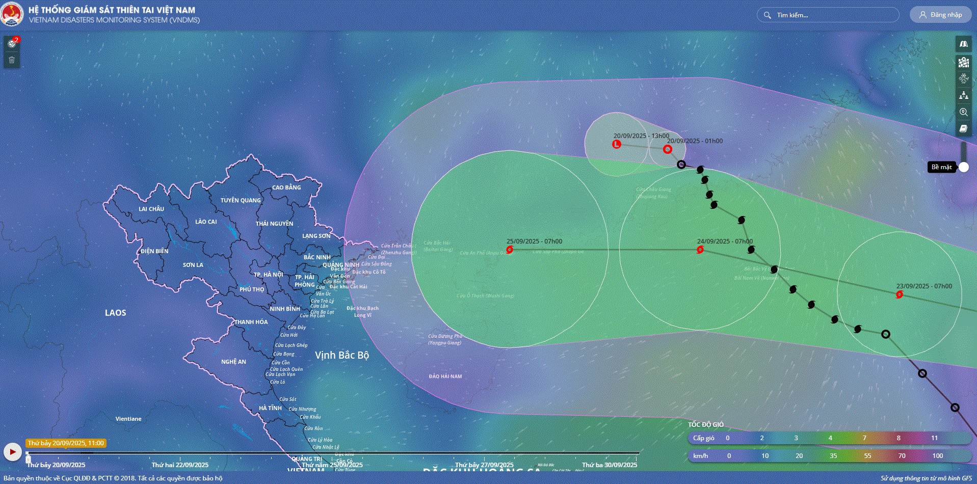 - On the evening of September 19, after moving deep into the mainland of the southern province of Guangdong (China), storm No. 8 weakened into a tropical depression. At 10 p.m., the center of the tropical depression was at about 23.2 degrees North latitude; 114.6 degrees East longitude, on the mainland of the southern province of Guangdong (China). The strongest wind near the center of the tropical depression was at level 6-7 (22-33 km/h), gusting to level 9. Moving northwest, at a speed of 5-10 km/h.