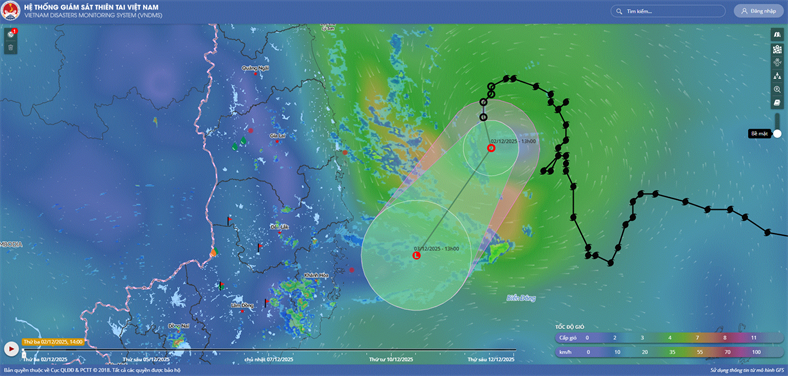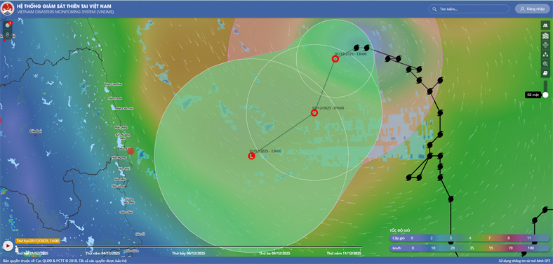 Hồi 19 giờ ngày 28/11, vị trí tâm bão ở vào khoảng 12,5 độ Vĩ Bắc; 112,6 độ Kinh Đông, cách đảo Song Tử Tây khoảng 200km về phía Tây Bắc. Sức gió mạnh nhất vùng gần tâm bão mạnh cấp 10 (89-102km/h), giật cấp 13. Di chuyển theo hướng Tây Tây Bắc, tốc độ 3-5km/h