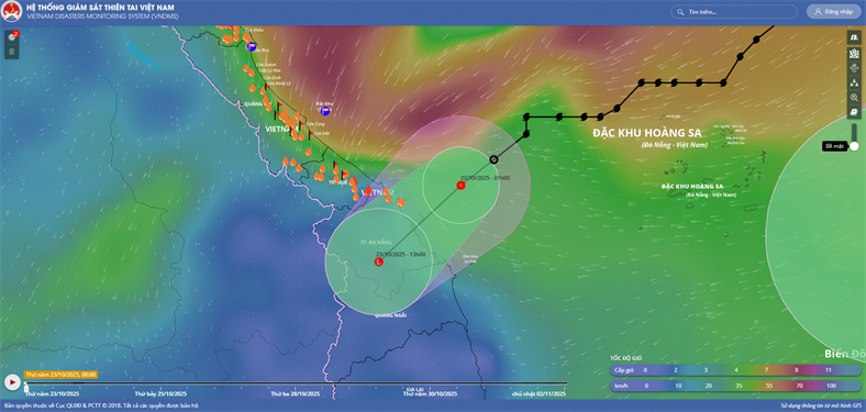 Hồi 07 giờ ngày 22/10, vị trí tâm bão ở vào khoảng 17,1 độ Vĩ Bắc; 110,7 độ Kinh Đông, trên vùng biển phía Tây Bắc đặc khu Hoàng Sa, cách Tp.Đà Nẵng khoảng 280km về phía Đông Đông Bắc. Sức gió mạnh nhất vùng gần tâm bão mạnh cấp 10 (89-102km/giờ), giật cấp 12. Di chuyển theo hướng Tây Tây Nam, tốc độ khoảng 10km/h.