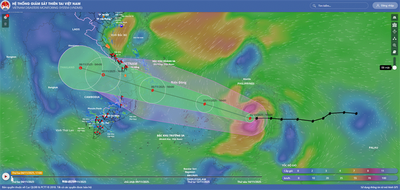 Hồi 07 giờ ngày 03/11, vị trí tâm bão KALMAEGI ở vào khoảng 10,7 độ Vĩ Bắc; 129,0 độ Kinh Đông, trên vùng biển phía Đông miền Trung Phi-líp-pin. Sức gió mạnh nhất vùng gần tâm bão mạnh cấp 11 (89-102km/giờ), giật cấp 15. Di chuyển theo hướng Tây Tây Nam với tốc độ nhanh khoảng 25km/h
