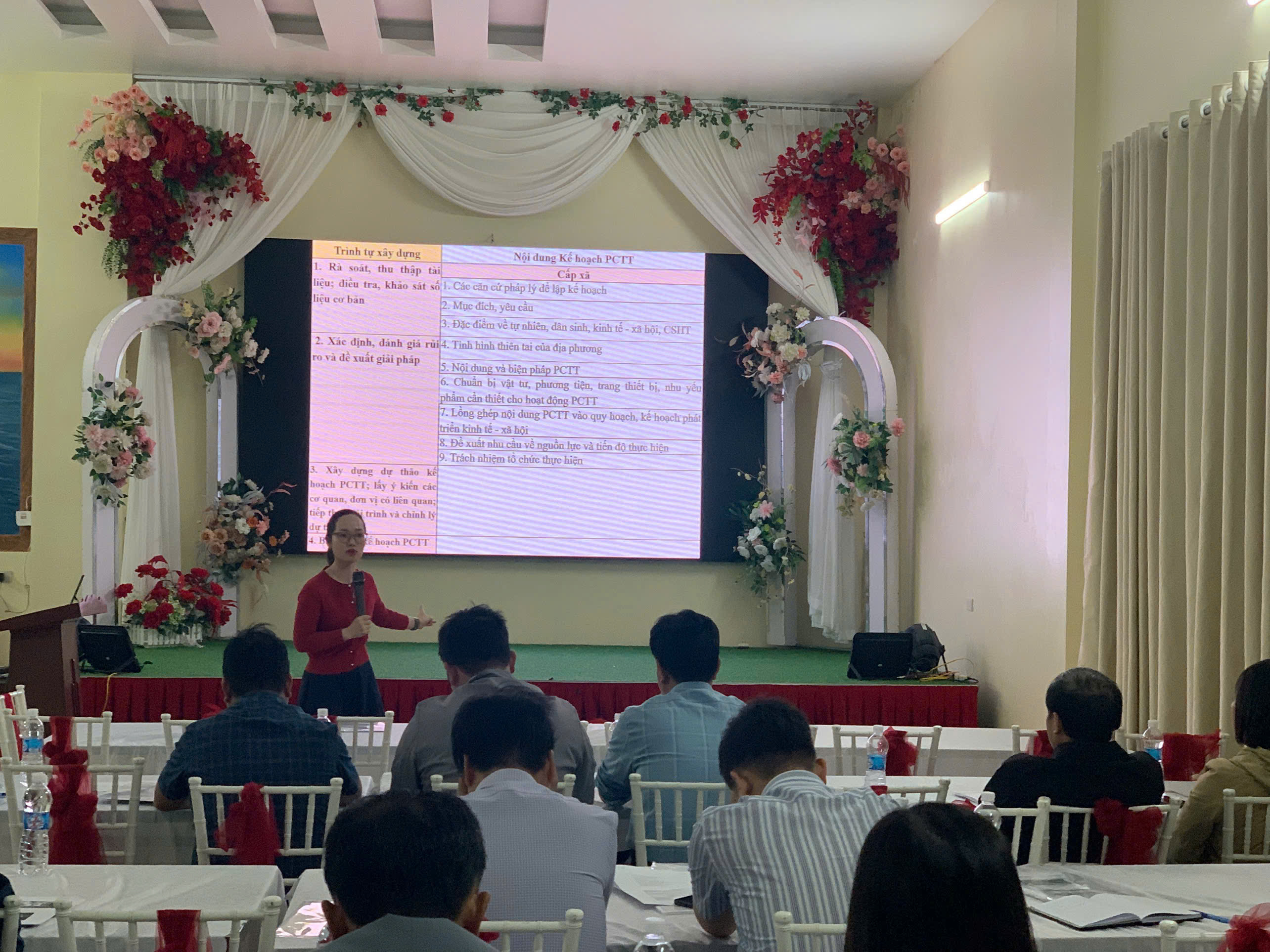 Tại khóa tập huấn, 46 học viên đến từ 23 xã trên địa bàn tỉnh Ninh Bình đã được giảng viên chia sẻ, cập nhật các kiến thức liên quan đến các quy định pháp luật và chính sách mới về PCTT tại Việt Nam trong bối cảnh chính quyền 02 cấp; Hướng dẫn xây dựng kế hoạch phòng chống thiên tai cấp xã và phương án ứng phó thiên tai theo các cấp độ rủi ro thiên tai; Truyền thông trong phòng chống thiên tai; Ứng dụng công nghê thông tin, chuyển đổi số ứng phó thiên tai dựa vào cộng đồng trong vận hành chính quyền địa phương 02 cấp.