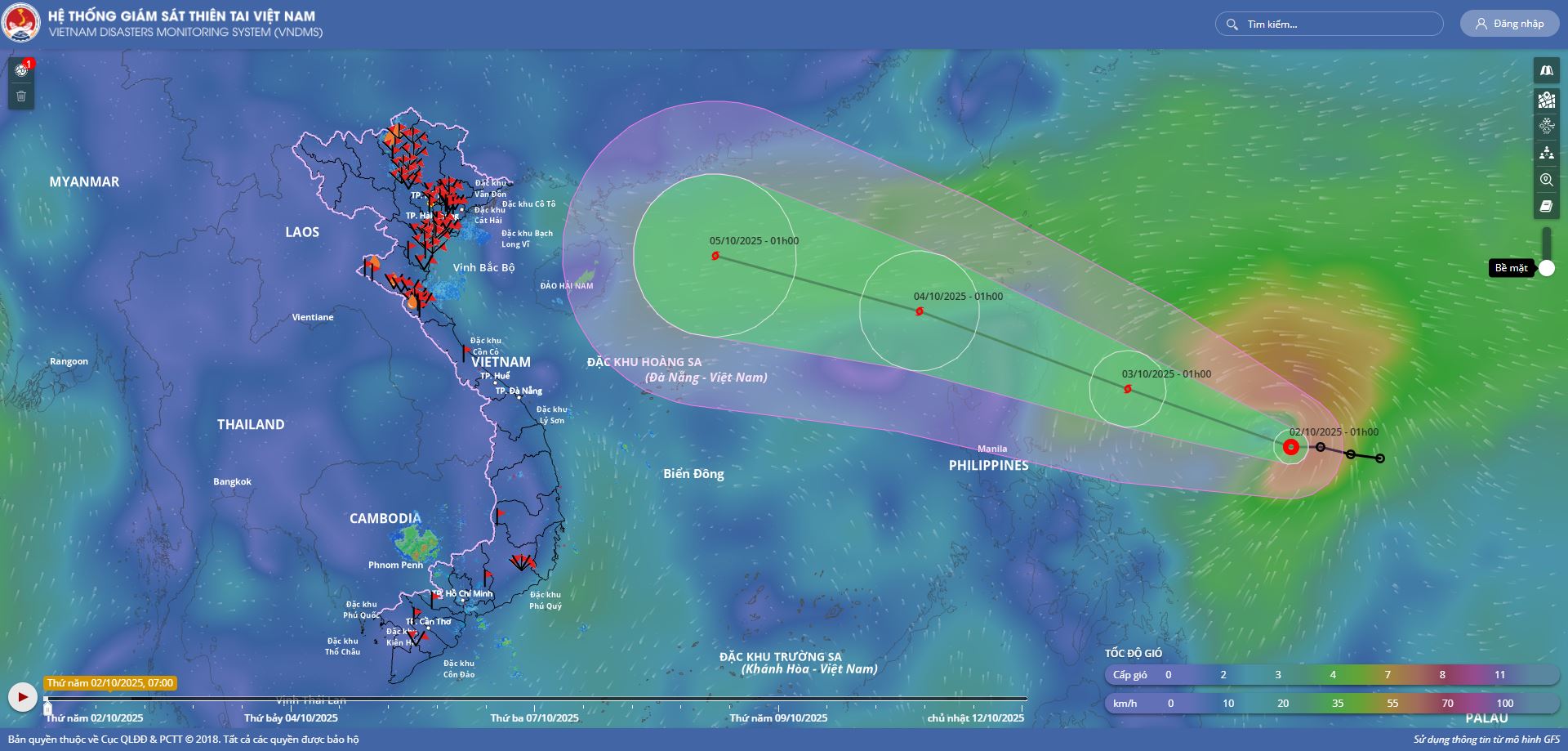 - Chiều ngày 03/10, bão Matmo đã đi vào vùng biển phía Đông khu vực Bắc Biển Đông, cơn bão số 11 trên Biển Đông trong năm 2025. Hồi 17 giờ, vị trí tâm bão ở vào khoảng 17,0 độ Vĩ Bắc; 120,0 độ Kinh Đông, trên vùng biển phía Đông khu vực Bắc Biển Đông. Sức gió mạnh nhất vùng gần tâm