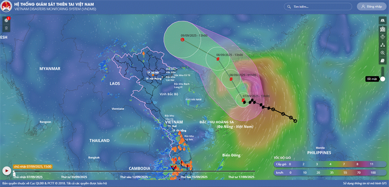 Đông đã mạnh lên thành bão, cơn bão số 7 (tên quốc tế là Tapah). Hồi 19 giờ, vị trí tâm bão ở vào khoảng 18,3 độ Vĩ Bắc; 115,8 độ Kinh Đông, trên vùng biển phía Đông khu vực Bắc Biển Đông. Sức gió mạnh nhất vùng gần tâm bão mạnh cấp 8 (62-74km/giờ), giật cấp 10. Di chuyển theo hướng Tây Bắc, tốc độ 10-15km/h.
