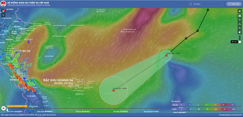 Hồi 07 giờ ngày 22/10, vị trí tâm bão ở vào khoảng 17,1 độ Vĩ Bắc; 110,7 độ Kinh Đông, trên vùng biển phía Tây Bắc đặc khu Hoàng Sa, cách Tp.Đà Nẵng khoảng 280km về phía Đông Đông Bắc. Sức gió mạnh nhất vùng gần tâm bão mạnh cấp 10 (89-102km/giờ), giật cấp 12. Di chuyển theo hướng Tây Tây Nam, tốc độ khoảng 10km/h.