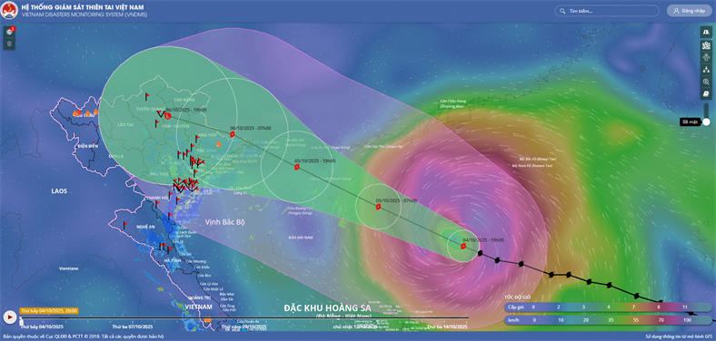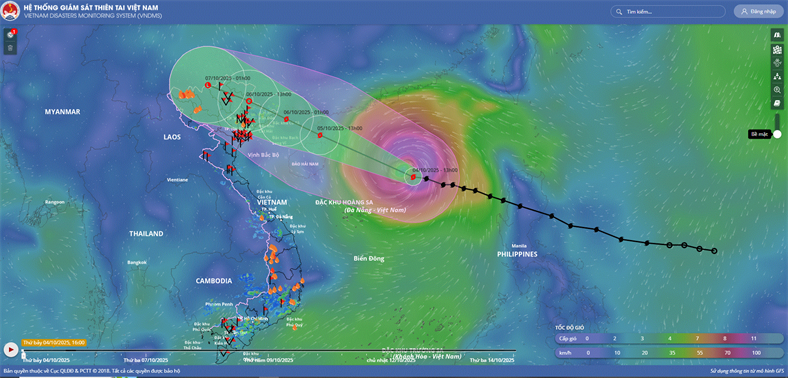 Hồi 19 giờ ngày 04/10, vị trí tâm bão ở vào khoảng 18,7 độ Vĩ Bắc; 114,3 độ Kinh Đông, trên khu vực Bắc Biển Đông, cách đảo Hải Nam (Trung Quốc) khoảng 380km về phía Đông Đông Nam. Sức gió mạnh nhất vùng gần tâm bão mạnh cấp 12 (118-133km/giờ), giật cấp 15. Di chuyển theo hướng Tây Tây Bắc, tốc độ khoảng 25km/h.