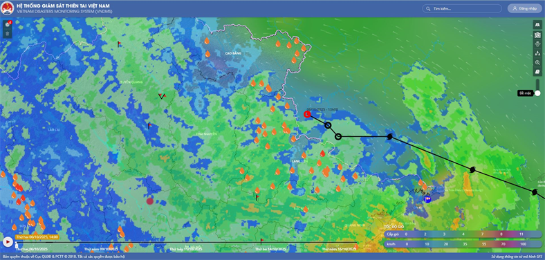 Hồi 13 giờ, vị trí trung tâm vùng áp thấp ở vào khoảng 22,2 độ Vĩ Bắc; 106,8 độ Kinh Đông. Sức gió mạnh nhất ở trung tâm vùng áp thấp giảm xuống dưới cấp 6 (dưới 39km/giờ).